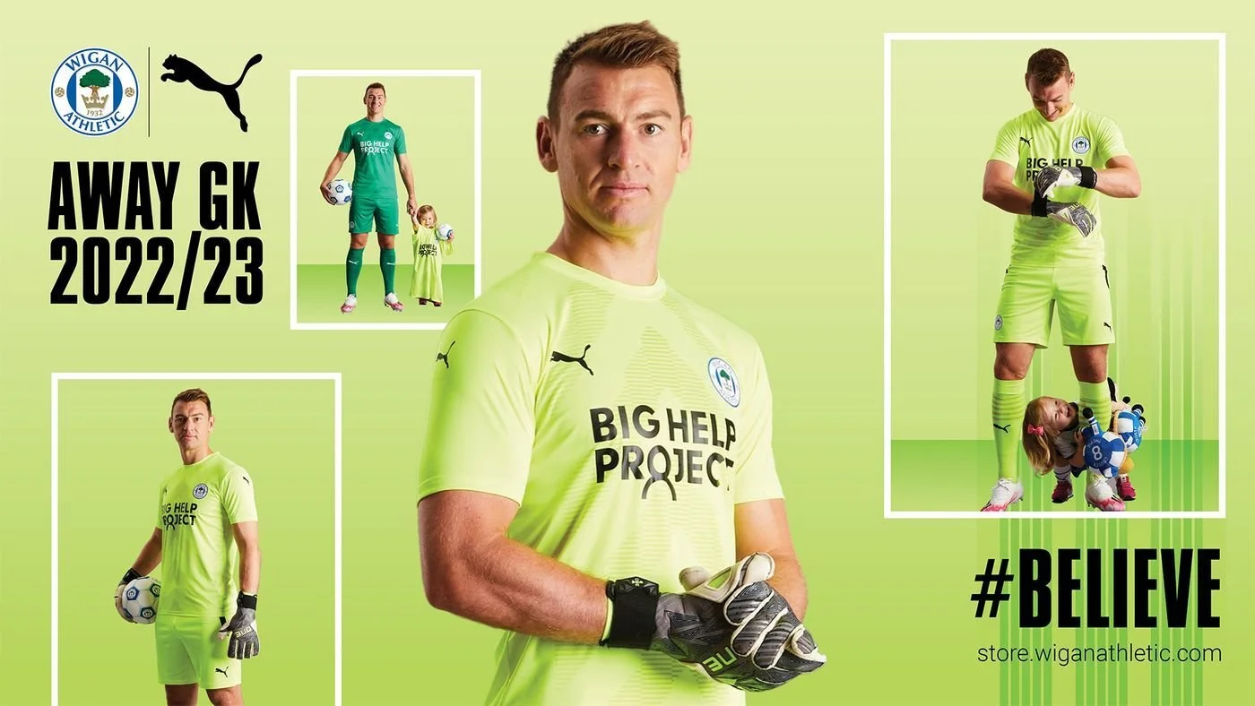 With an avid Liverpool fan in our office, who also designed the recently launched Big Help Project identity, we were thrilled to discover it on the front of Wigan Athletic Football Club’s new kit. Especially as it was on the same day that Liverpool U21’s were playing their second pre-season friendly against Wigan Athletic. Who was he going to support?