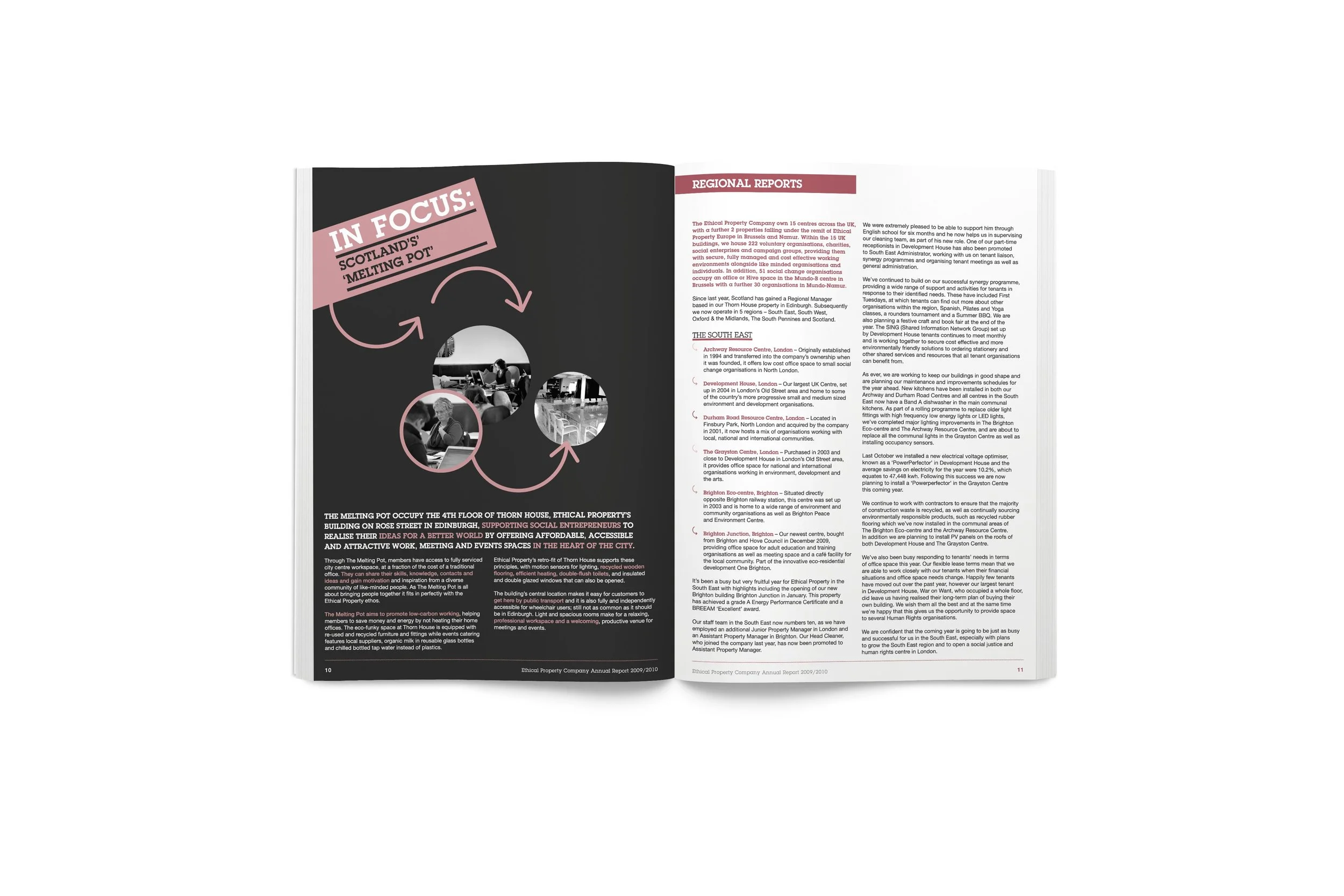 Creating 15 annual reports, we worked in partnership with the Ethical Property Company as it evolved as an organisation. Every year required a fresh approach to reflect the developing strategic ambition, while maintaining brand integrity.