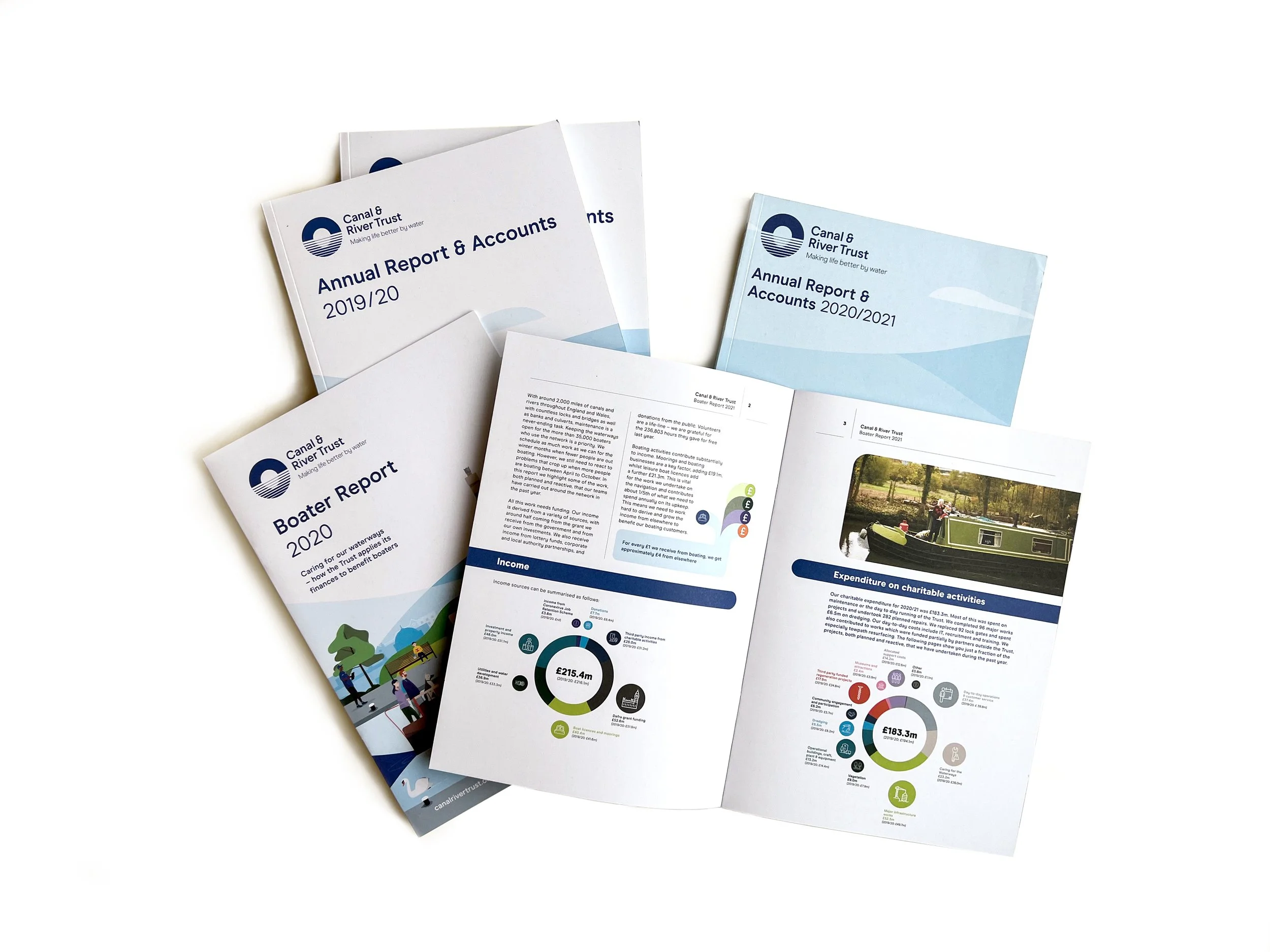 We have worked in partnership with Canal & River Trust since 2011. Print projects range from multiple annual reports, Boaters reports and their first Outcomes report, to marketing leaflets and promotional information, including Z-cards, newspapers, internal communication materials and leaflets for national distribution.